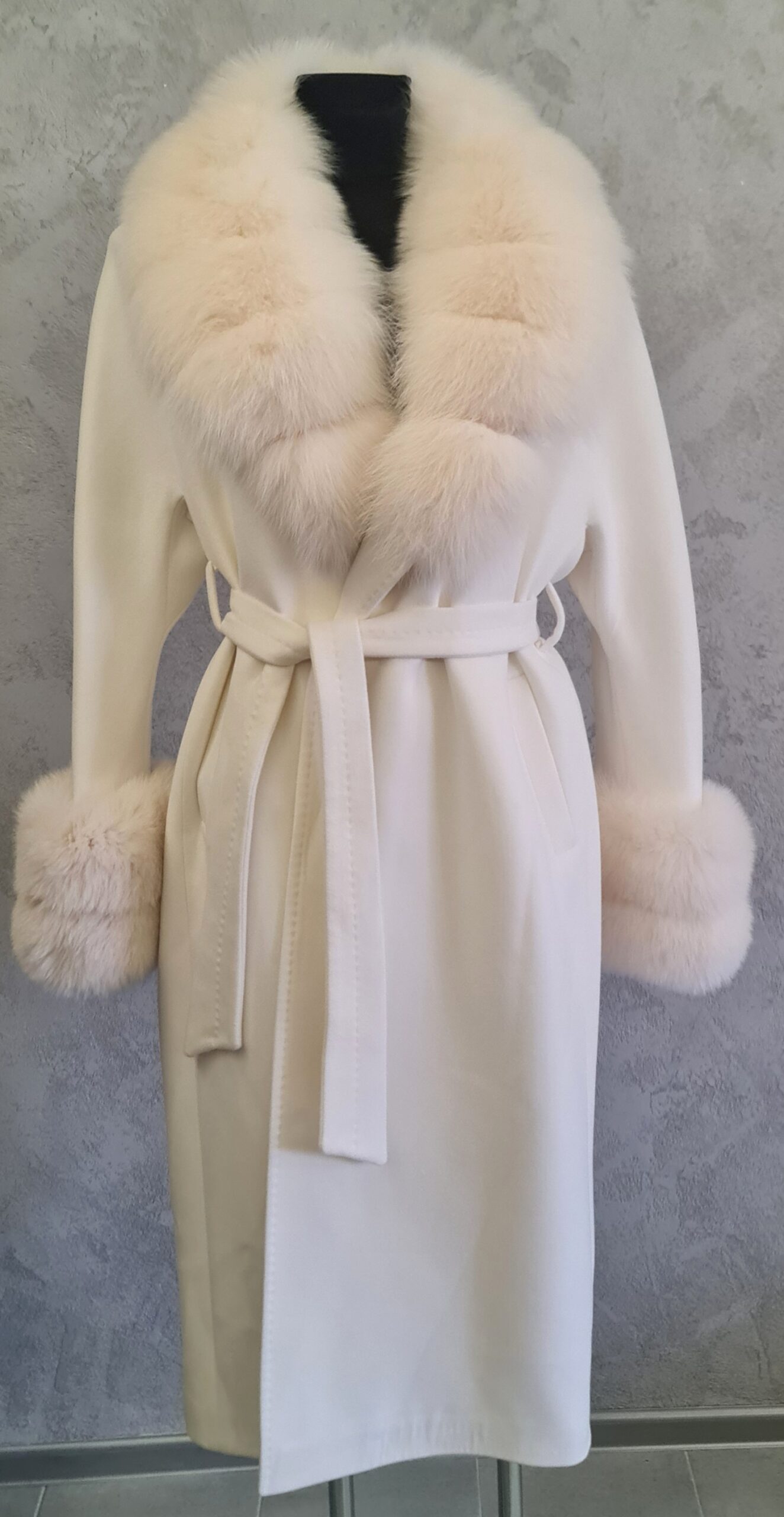 / Płaszcz damski z kaszmiru- naturalny lis